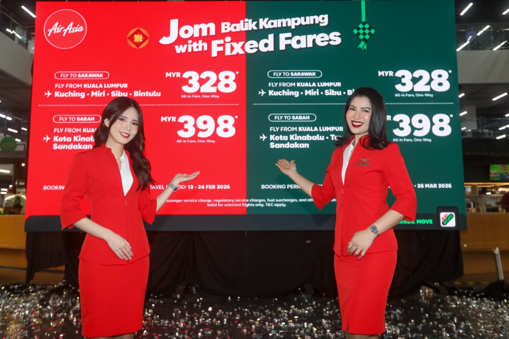 Festive fares: AirAsia caps KL-Sarawak ticket price at RM328 and KL-Sabah at RM398 for CNY, Aidilfitri